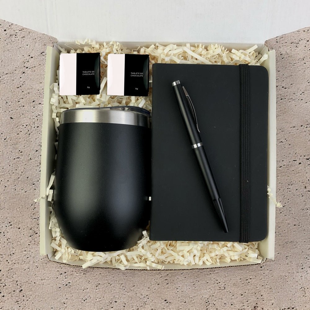 O Kit Prático com Estilo da LeBlank é a solução perfeita para presentear de forma útil, elegante e acessível. Com caderneta, caneta, copo térmico e um mimo doce, todos personalizados com a sua marca, este kit oferece praticidade no dia a dia com uma apresentação encantadora e alto valor percebido.