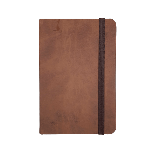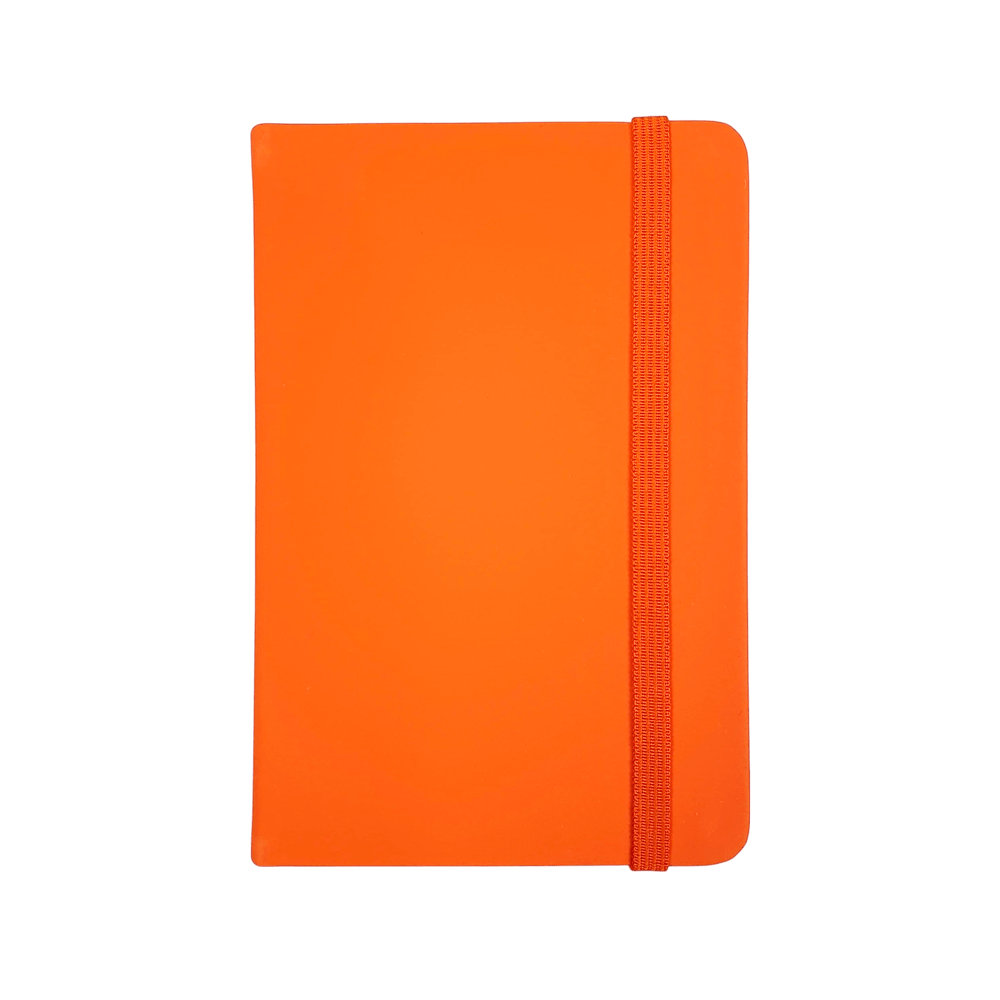 - Capa: couro sintético emborrachado com elástico para fechamento seguro