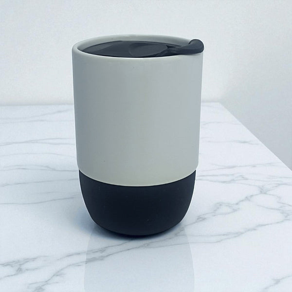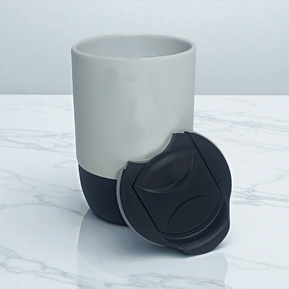 Copo Ceramico Branco Fosco com Tampa Acrilica e Base Silicone 325ml - Preto - Personalizado