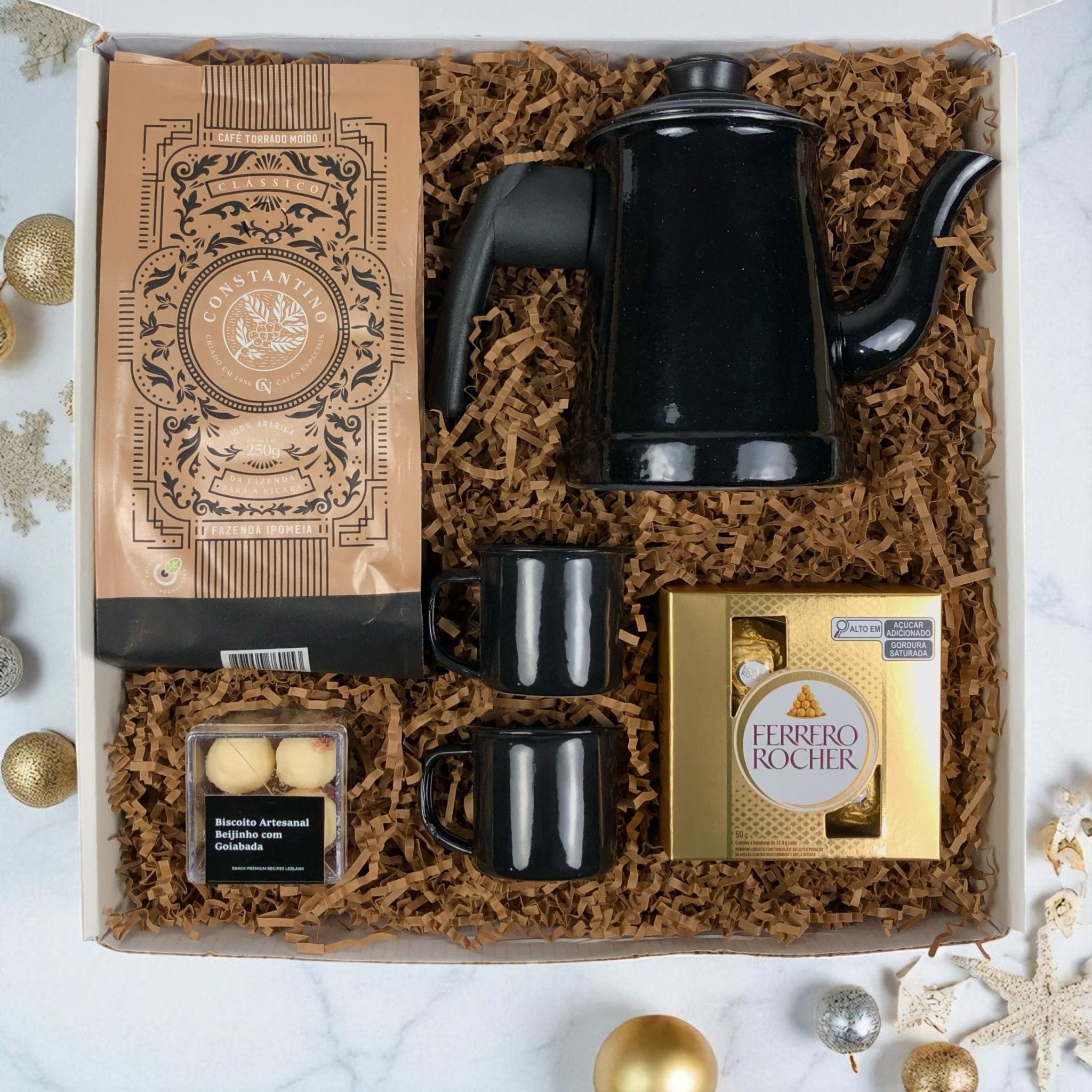 Este kit une tradição, afeto e sofisticação em uma composição que valoriza as pausas e os momentos de conexão. Ideal para presentear colaboradores e clientes com um gesto acolhedor e memorável, reforçando a identidade da sua marca com charme e significado.