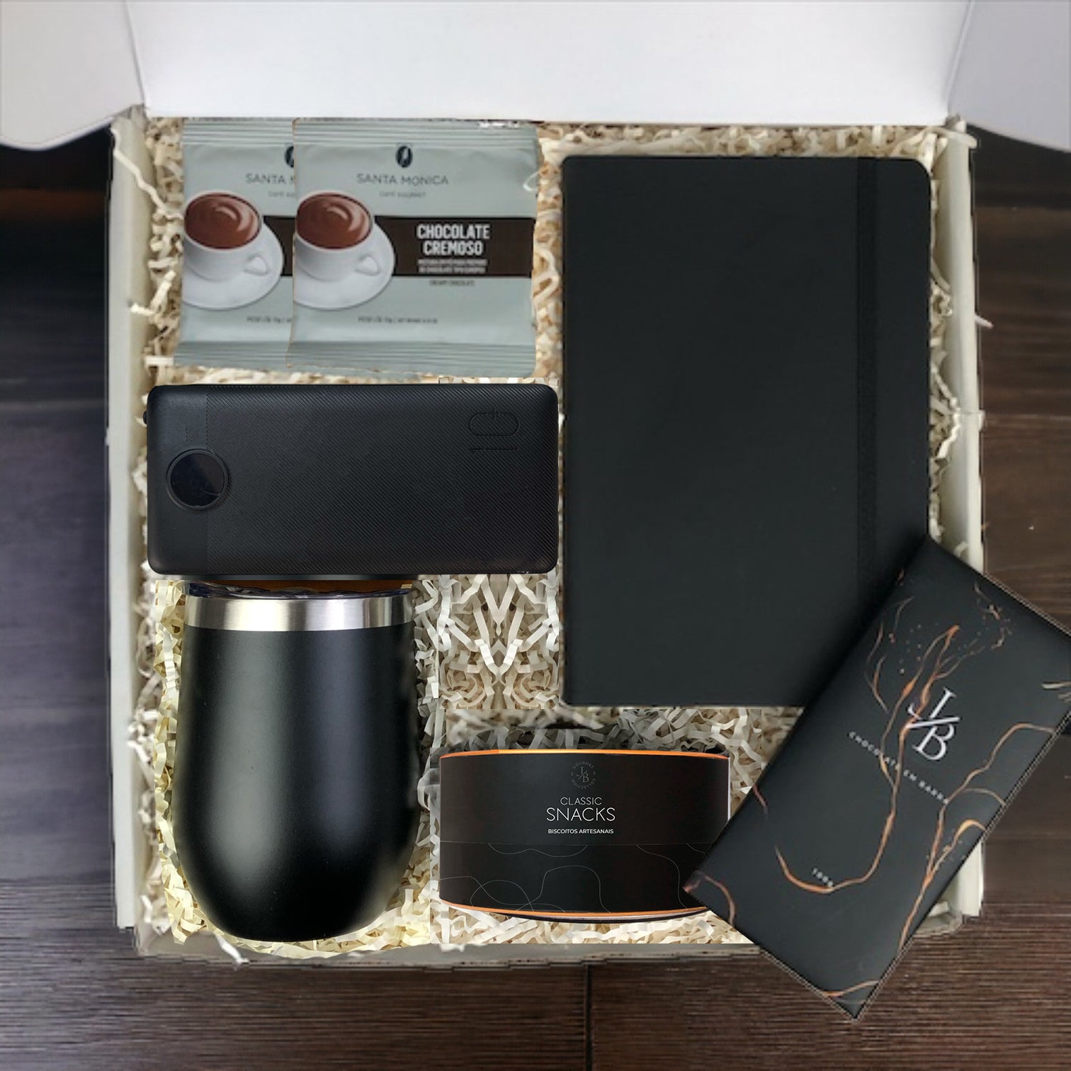 Kit Kit Presente Corporativo com Carregador Portátil e Snacks – Funcionalidade com Sabor